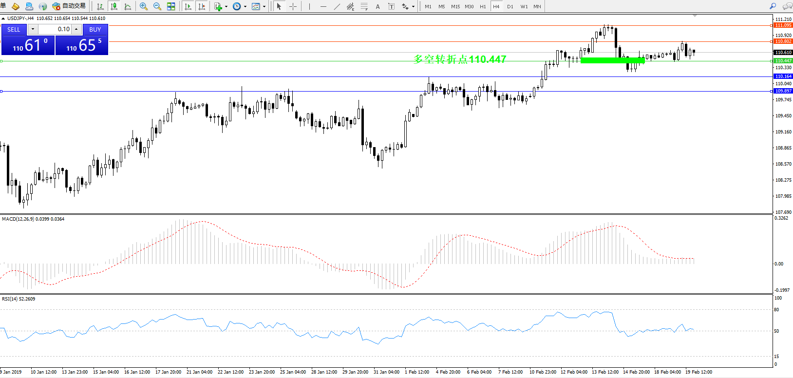 交易策略:110.447上方看涨,目标110.802110.095