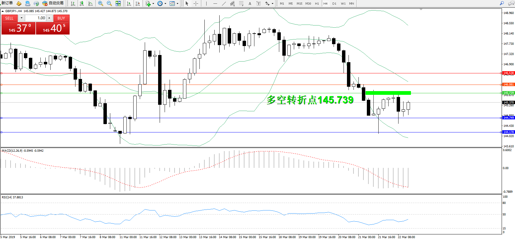 交易策略:145.739下方看跌,目标144.749144.178