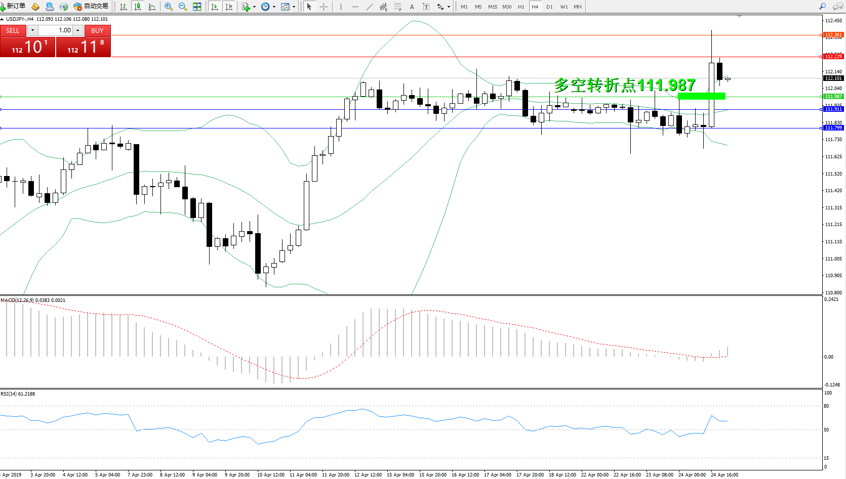 交易策略:111.987上方看涨,目标112.229、112.361