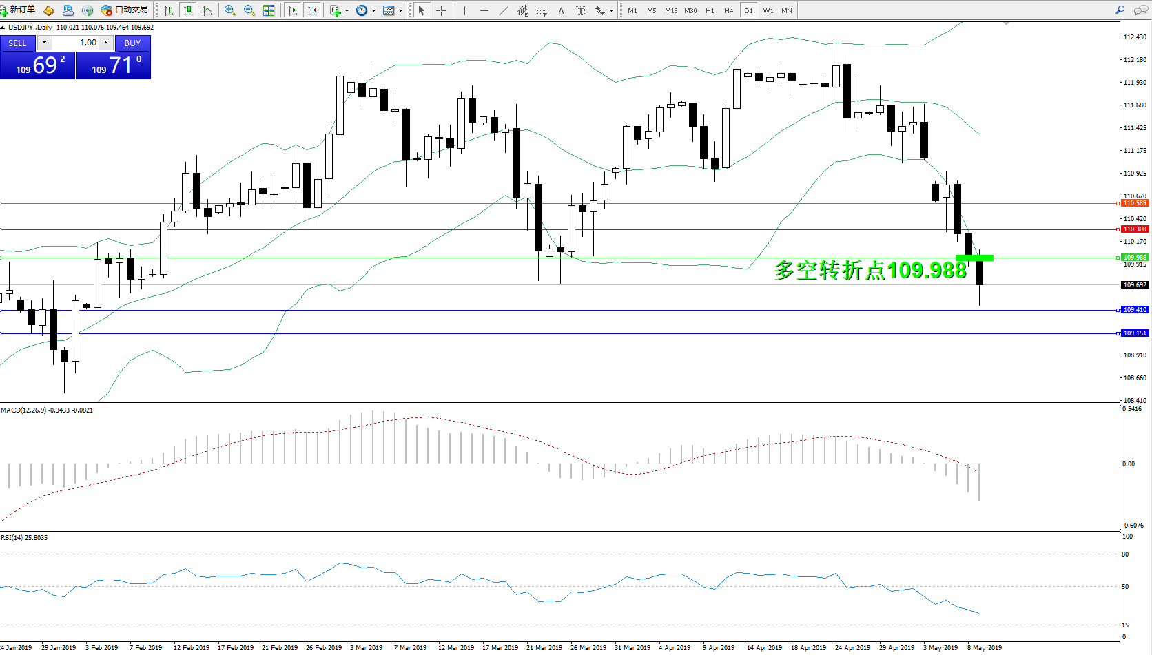 交易策略:109.988下方看跌,目标109.410109.151