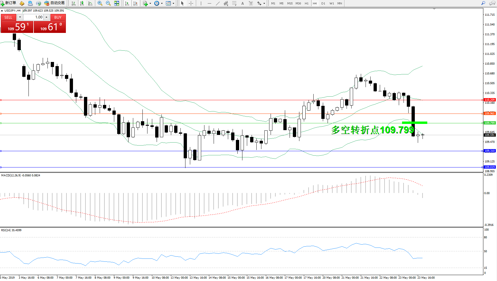交易策略:109.799下方看跌,目标109.310、109.019