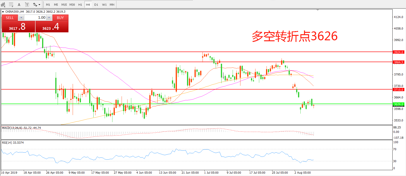 多空转折点:3626.00