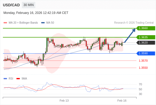 在 1.3590 之上,看涨,目标价位为 1.3635 ,然后为 1.3660 。