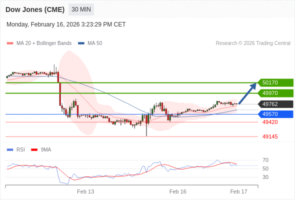 在 49570 之上,看涨,目标价位为 49970 ,然后为 50170 。