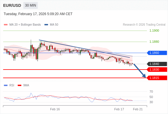 在 1.1860 之下,看跌,目标价位为 1.1830 ,然后为 1.1815 。