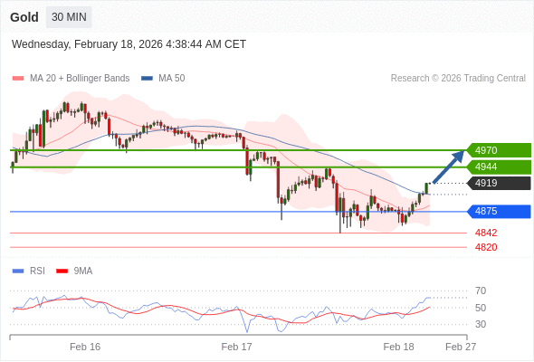在 4875 之上,看涨,目标价位为 4944 ,然后为 4970 。