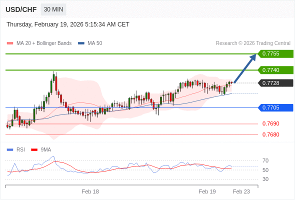 在 0.7705 之上,看涨,目标价位为 0.7740 ,然后为 0.7755 。