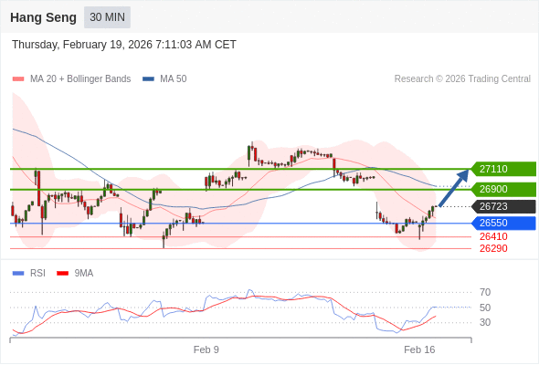 恒生指数 当日内: 目标位为26900。