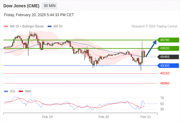 在 49300 之上,看涨,目标价位为 49630 ,然后为 49790 。