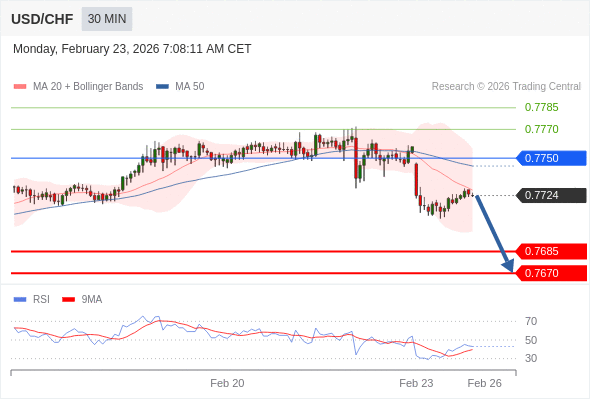 在 0.7750 之下,看跌,目标价位为 0.7685 ,然后为 0.7670 。