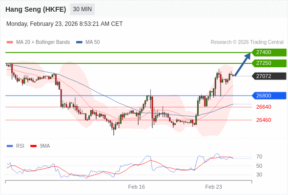 在 26800 之上,看涨,目标价位为 27250 ,然后为 27400 。