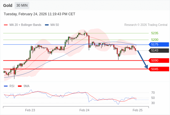 在 5175 之下,看跌,目标价位为 5090 ,然后为 5045 。