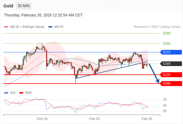 在 5215 之下,看跌,目标价位为 5125 ,然后为 5090 。