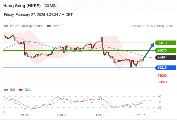在 26215 之上,看涨,目标价位为 26670 ,然后为 26870 。