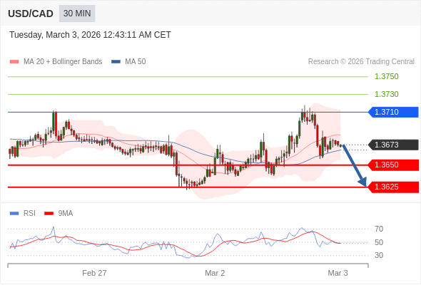 在 1.3710 之下,看跌,目标价位为 1.3650 ,然后为 1.3625 。