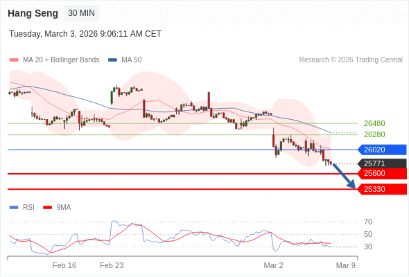在 26020 之下,看跌,目标价位为 25600 ,然后为 25330 。
