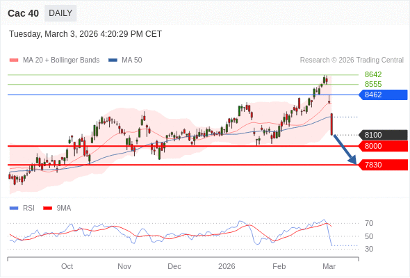 在 8462 之下,看跌,目标价位为 8000 ,然后为 7830 。