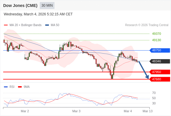 在 48750 之下,看跌,目标价位为 47950 ,然后为 47680 。