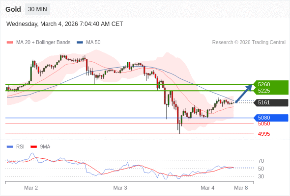 在 5080 之上,看涨,目标价位为 5225 ,然后为 5260 。