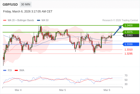 在 1.3330 之上,看涨,目标价位为 1.3375 ,然后为 1.3400 。