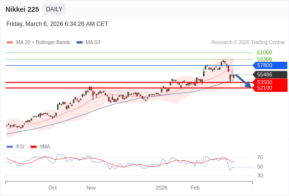 在 57800 之下,看跌,目标价位为 53500 ,然后为 52100 。