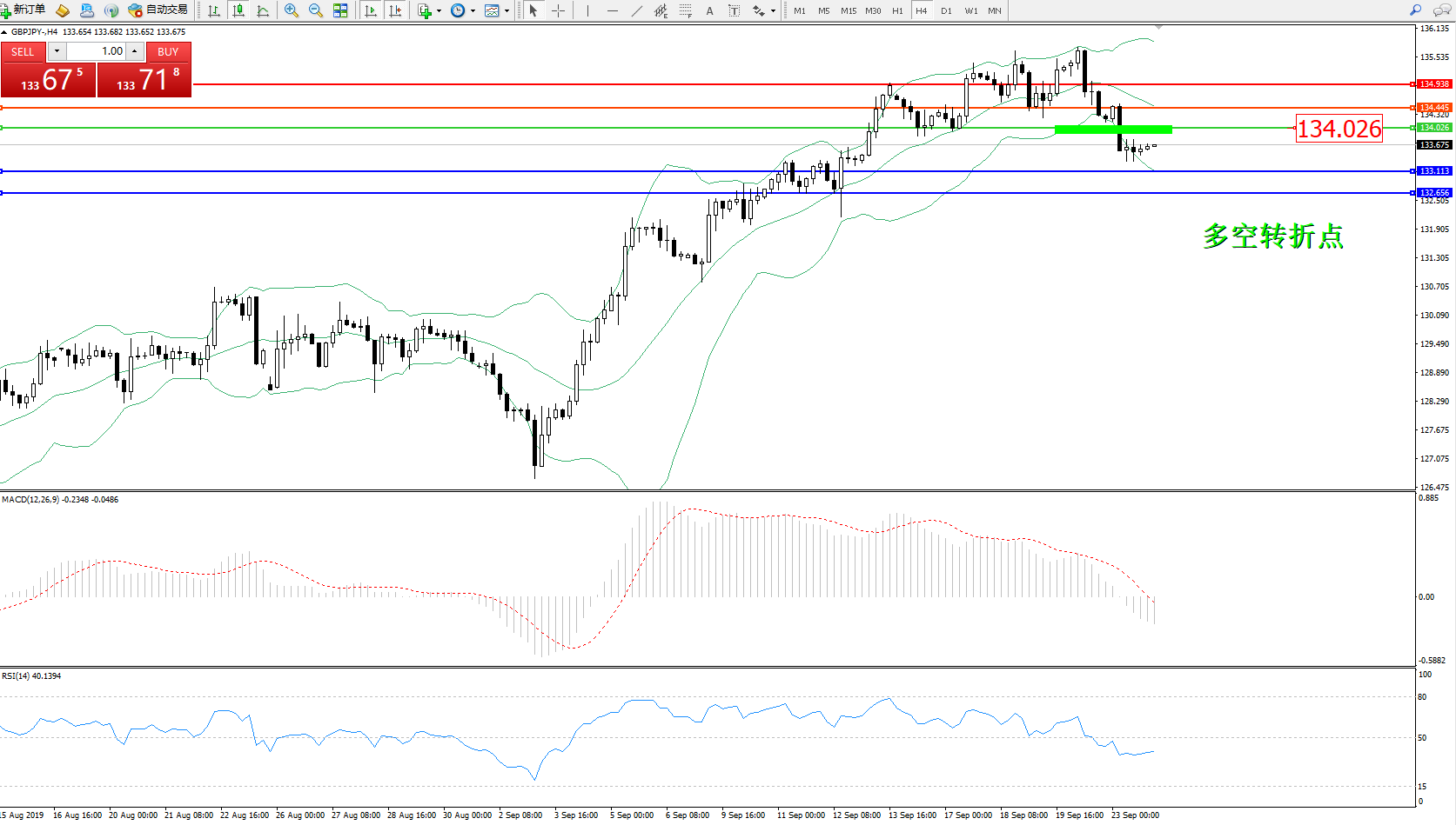 交易策略:134.026下方看跌,目标133.113、132.656