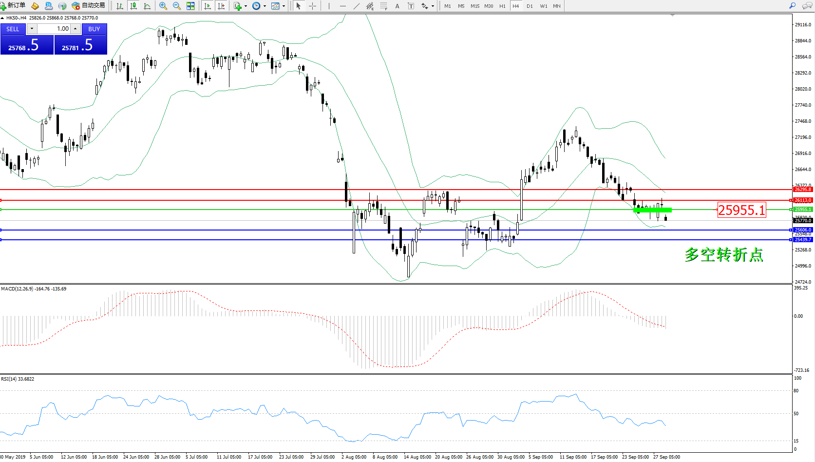 恒指HK50 ——4小时K线图显示:
