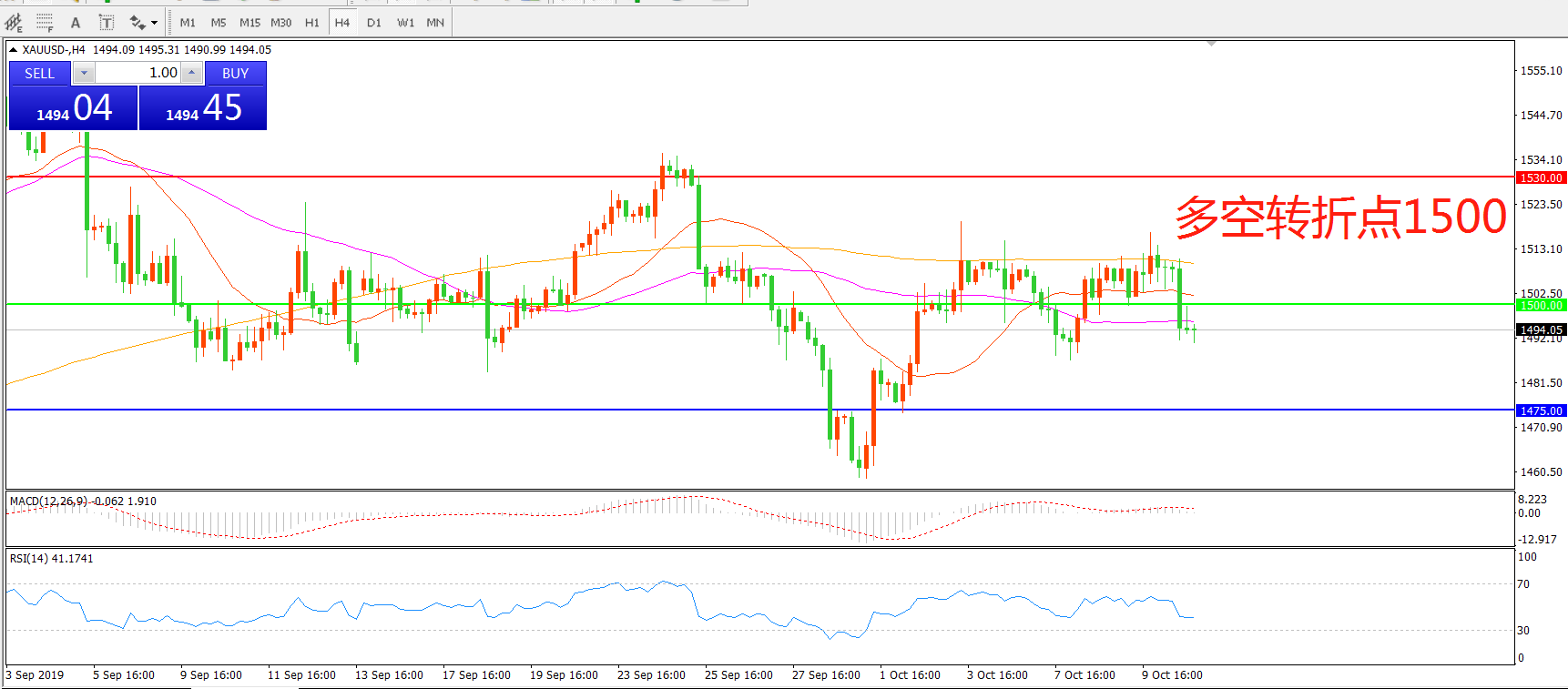 多空转折点:1500.00