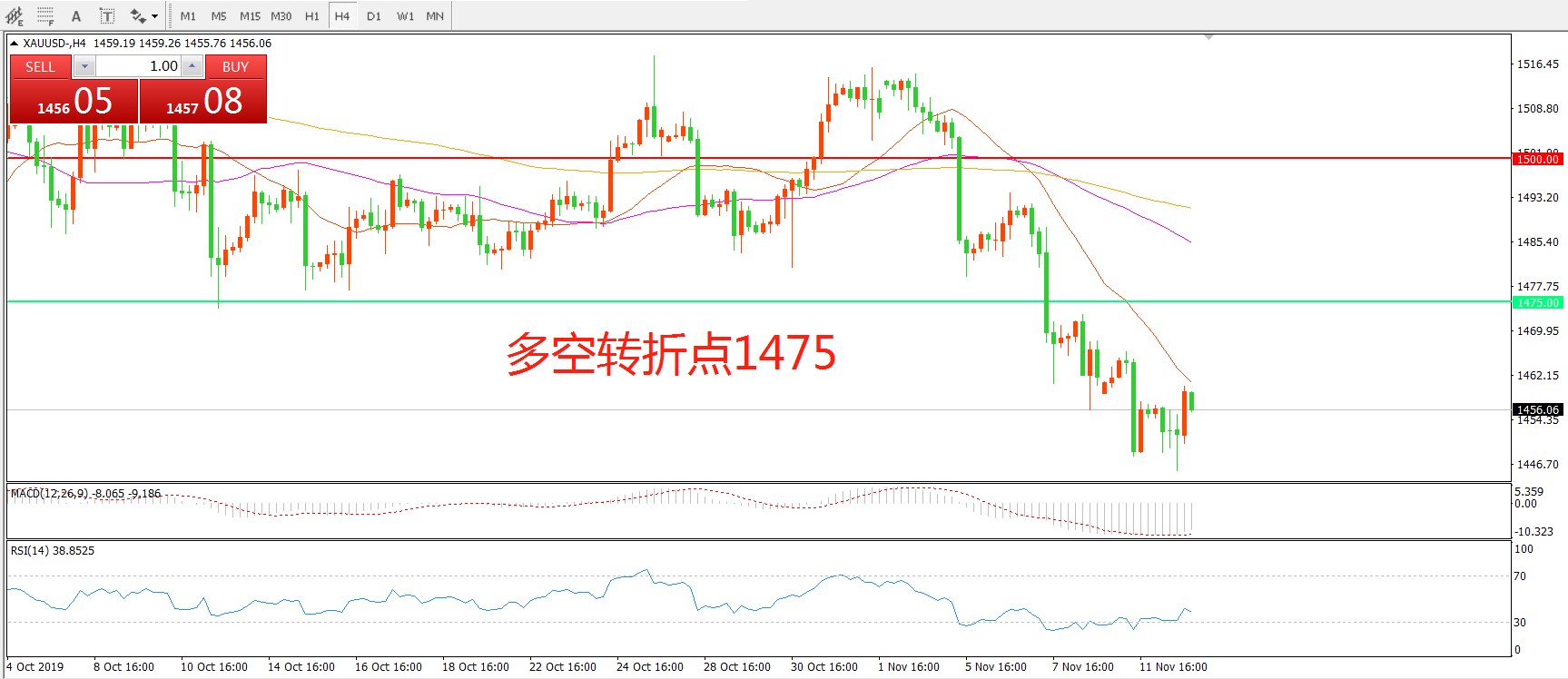 周二(11月12日), 美国总统特朗普在纽约经济俱乐部就贸易政策与贸易谈判发表了讲话,他认为美联储应该继续降息,并表示能够接受负利率。在股市连续大幅上涨之后,投资者调整头寸,等待更多基本面消息对市场的指引。现货金价暂时止跌,最终收报1456.93美元/盎司。今天,民主党将举行对特朗普弹劾听证会,务必重点关注。
