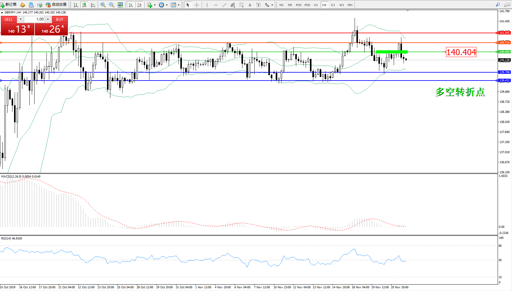 交易策略:140.404下方看跌,目标139.708139.432