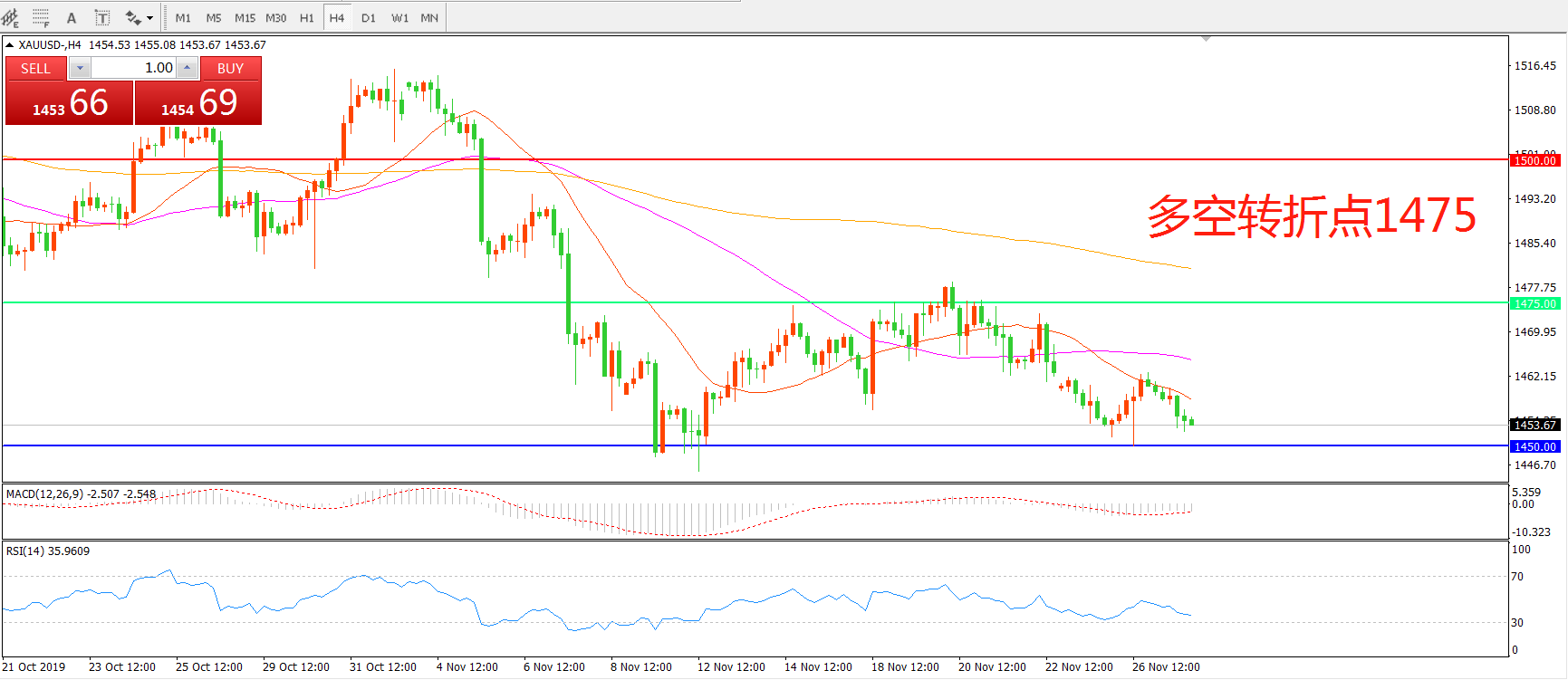 多空转折点:1475.00