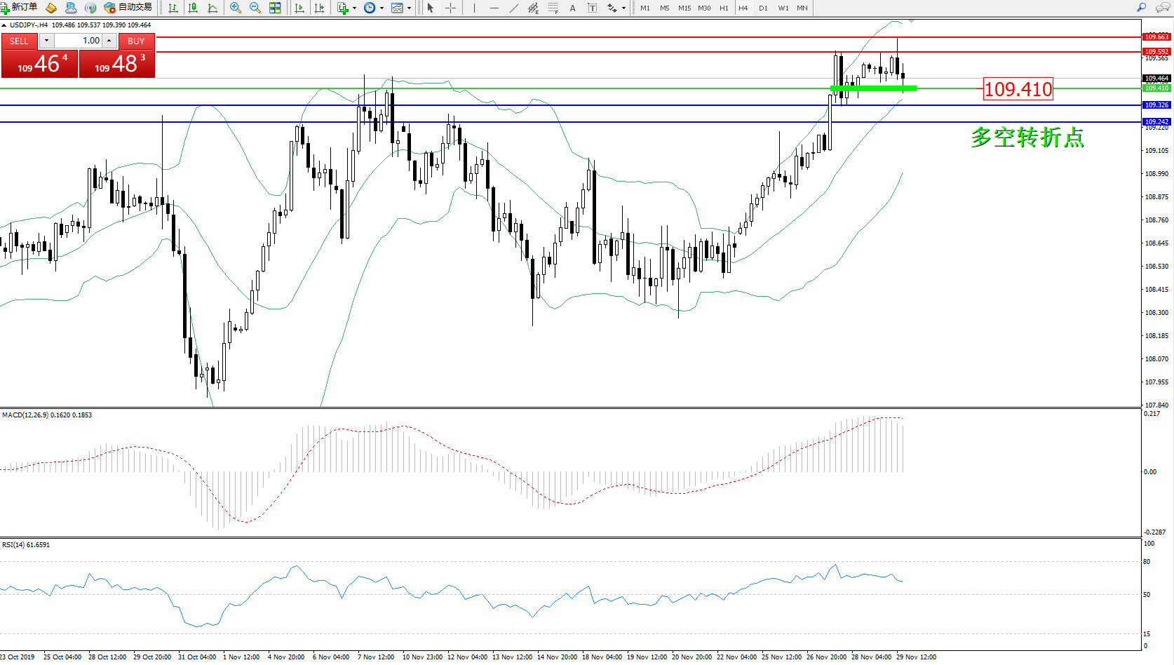 交易策略:109.410上方看涨,目标109.592109.663