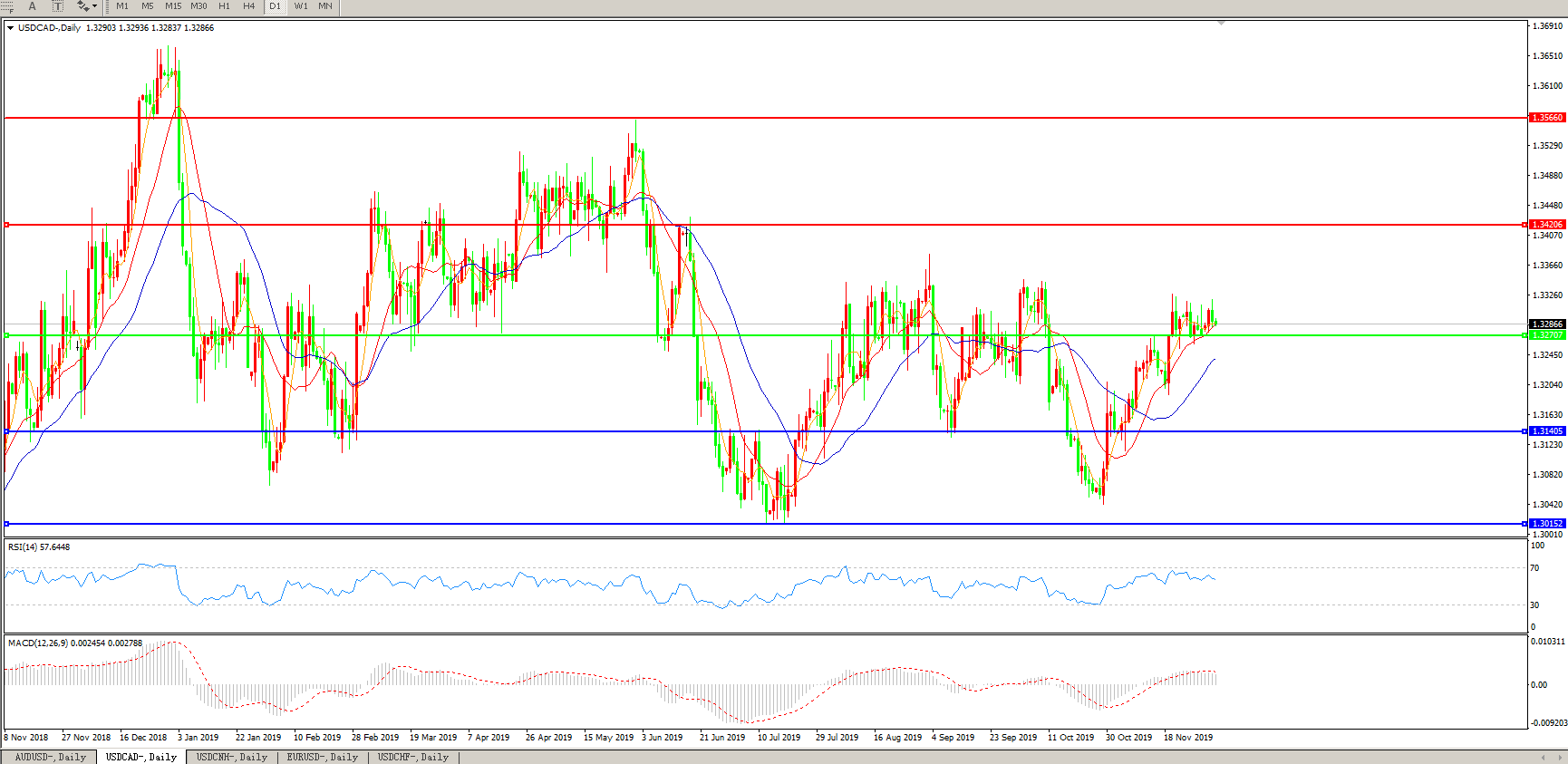 美元兑加元USDCAD 日线图:
