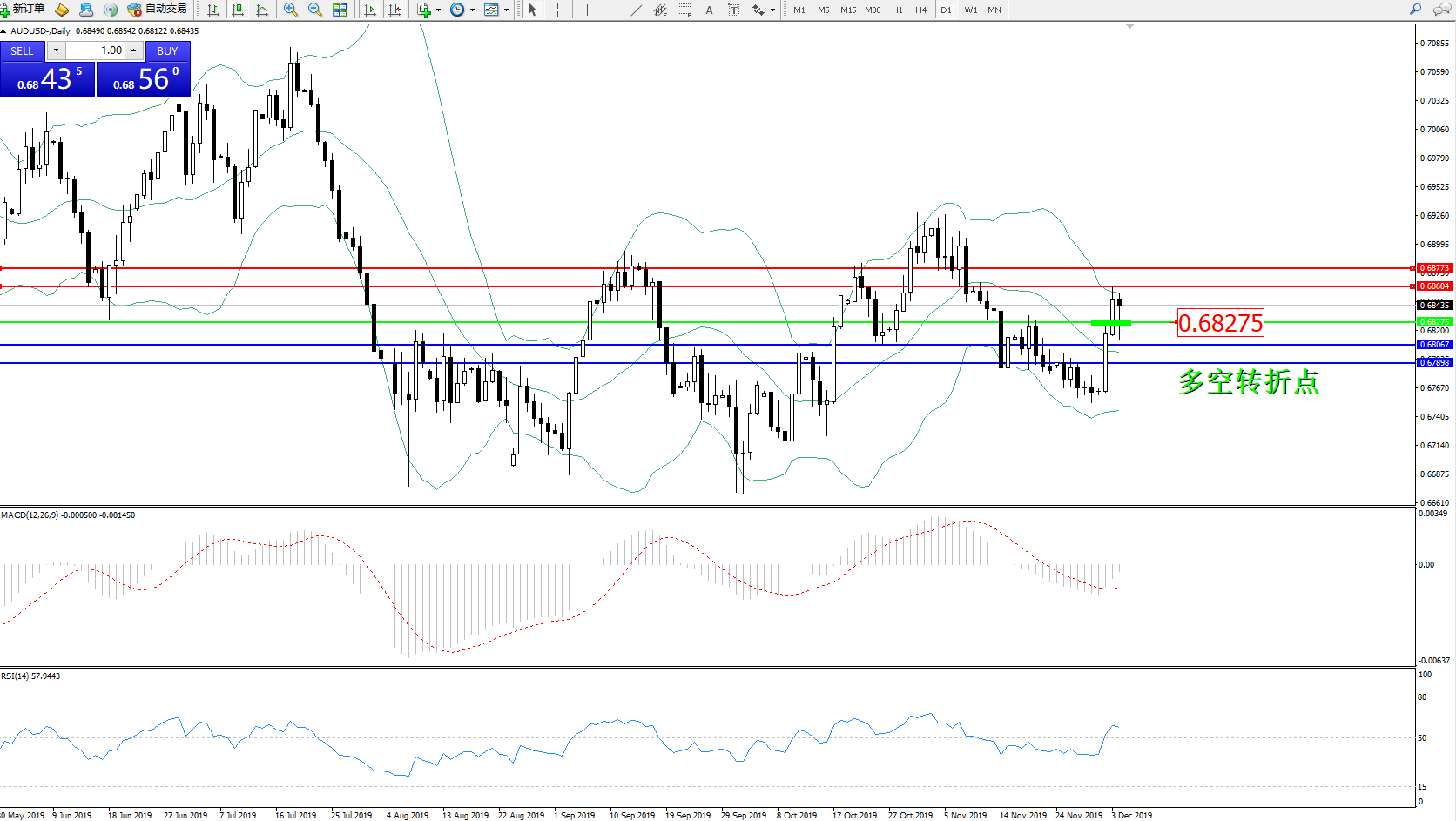 交易策略:0.68275上方看涨,目标0.68604、0.68773