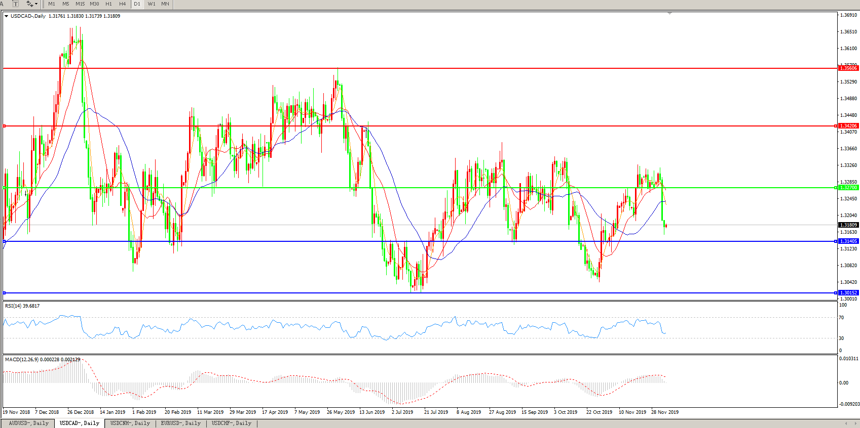 美元兑加元USDCAD    日线图: