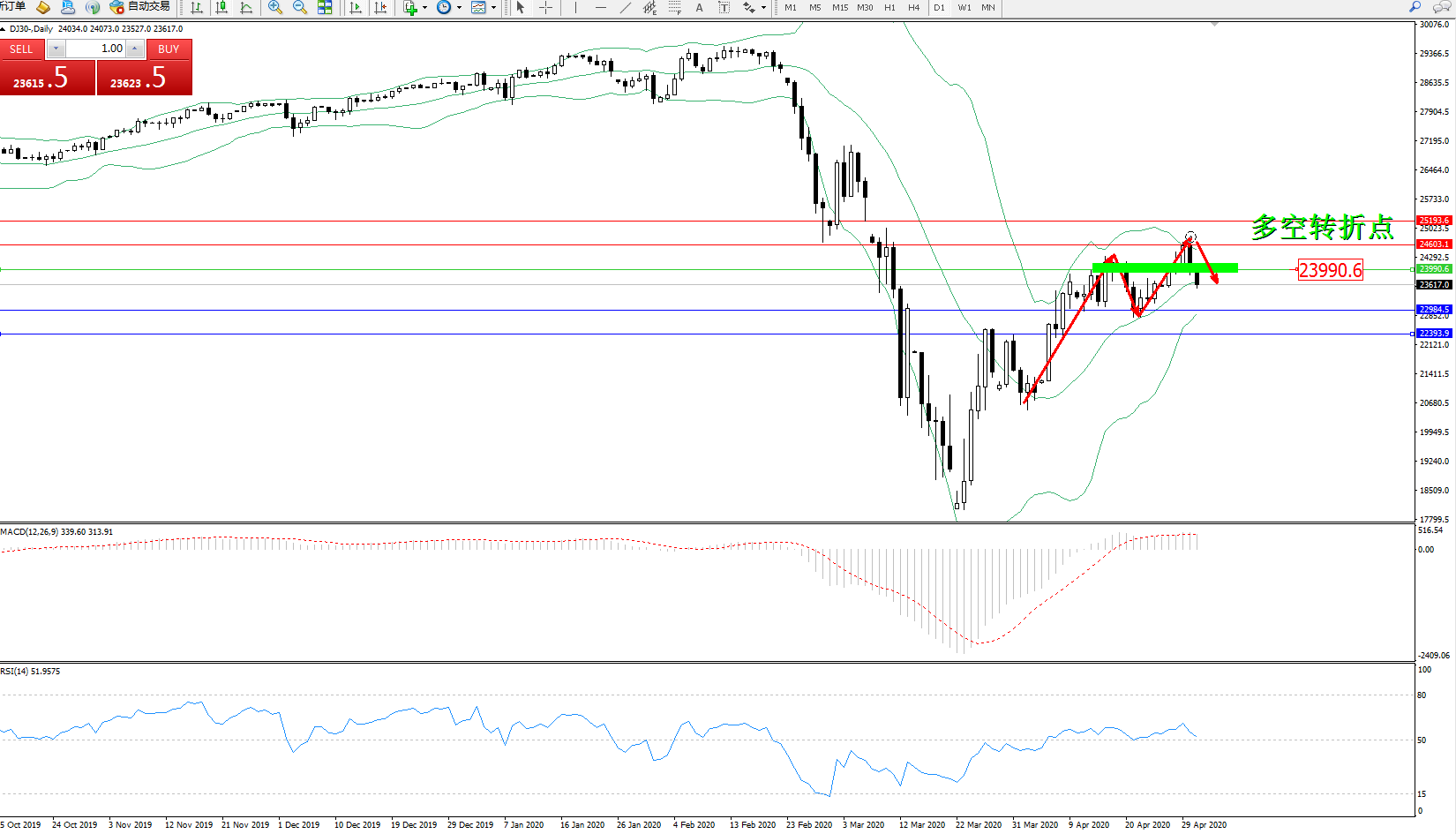 多空转折点:23990