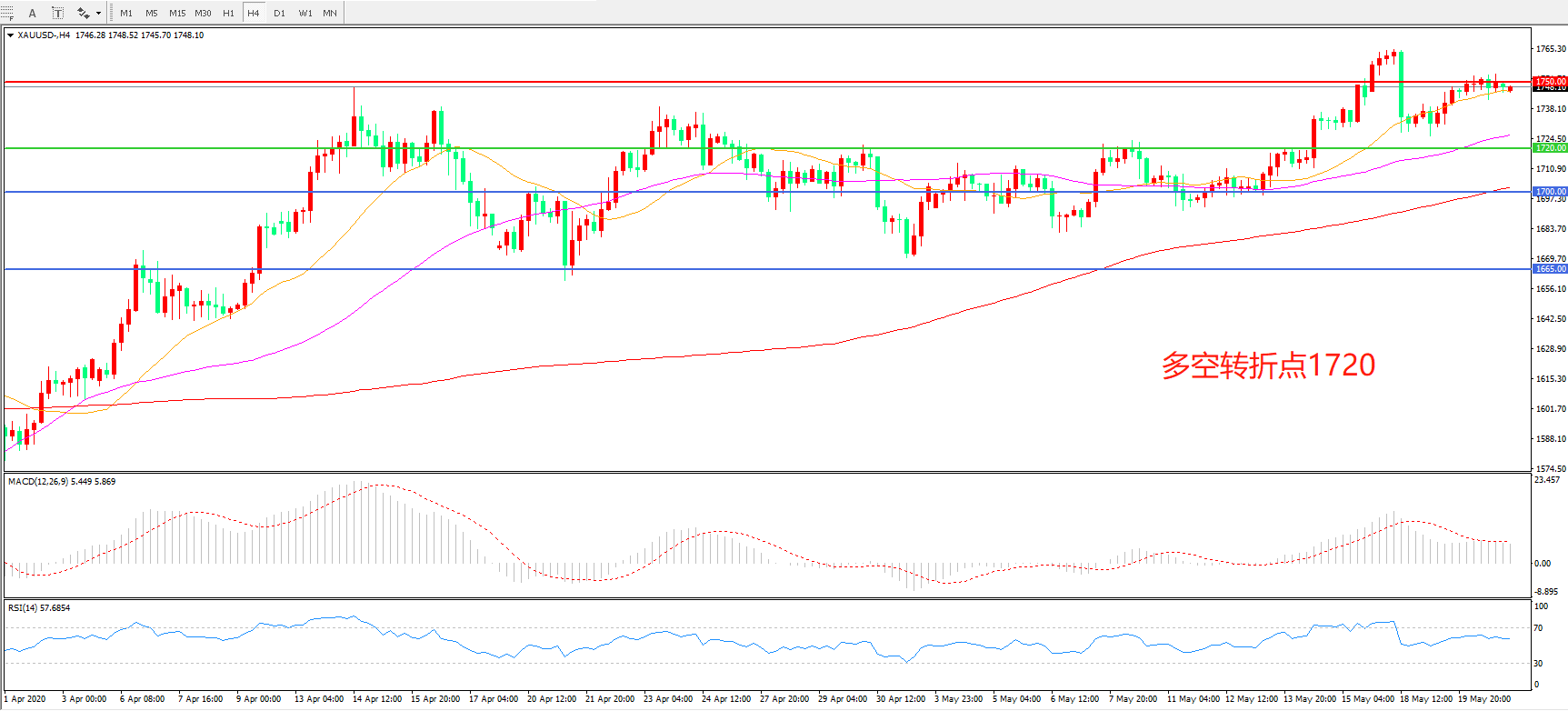 交易策略: 在1720.00之上看涨,目标1750.00 1785.00