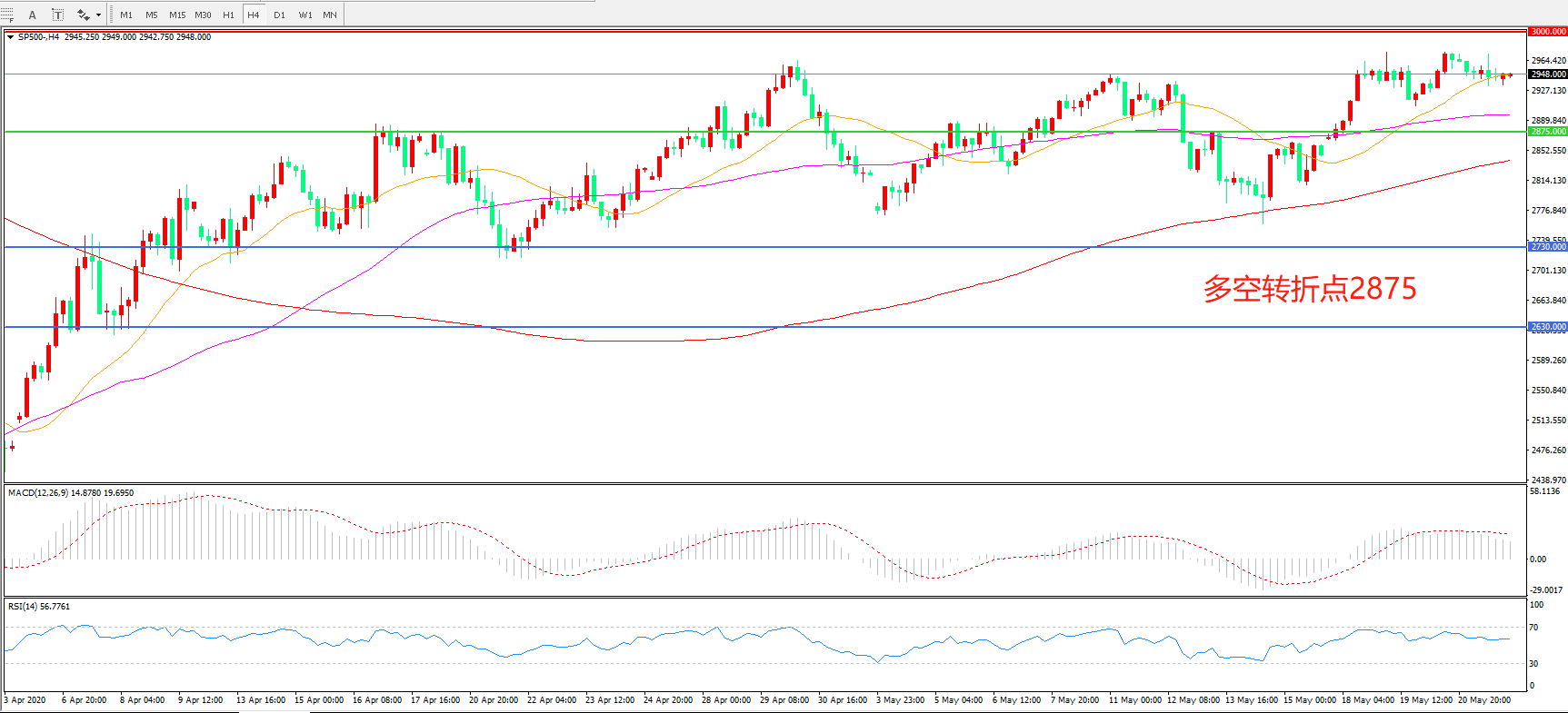 标普500 SP500   4小时图