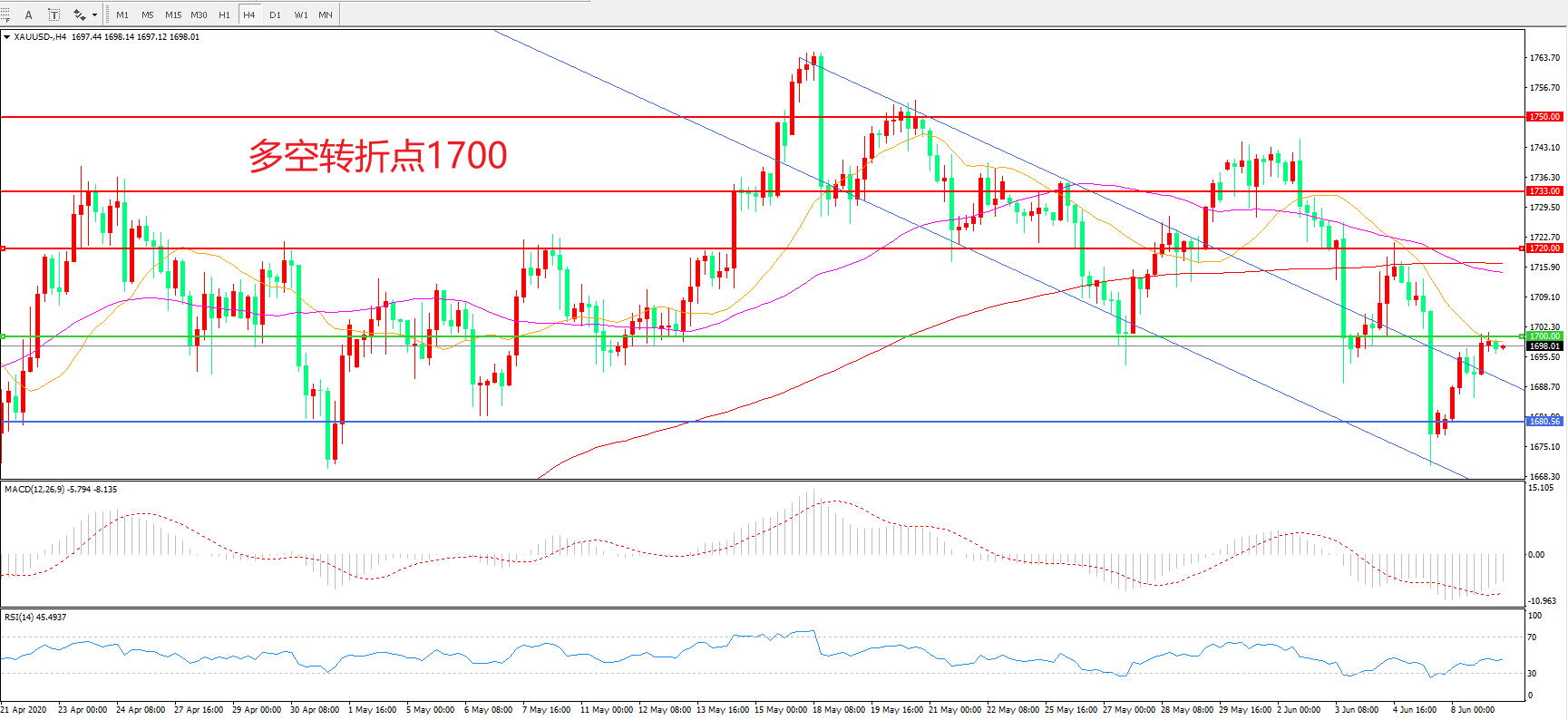 多空转折点:1700.00