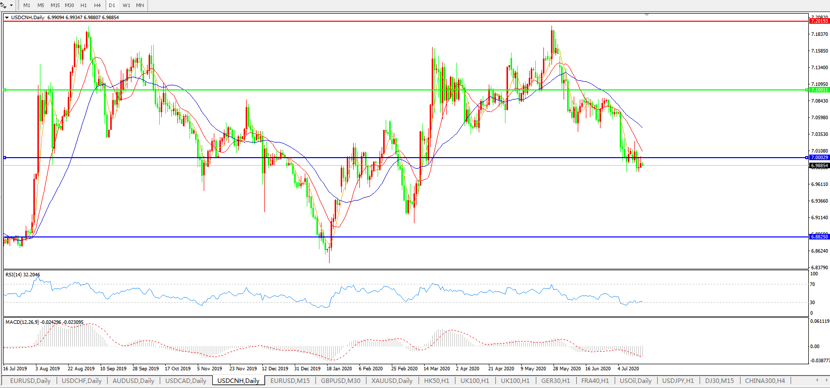 美元兑人民币USDCNH    日线图: