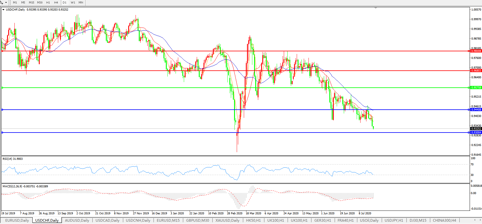 美元兑瑞郎USDCHF    日线图: