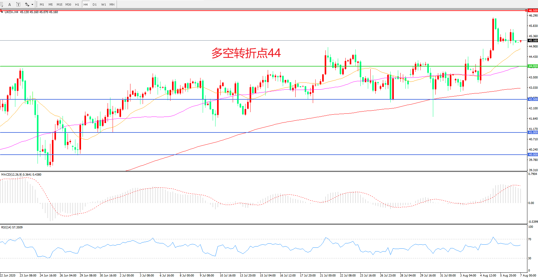 交易策略: 在44.00之上看涨,目标46.50 49.00