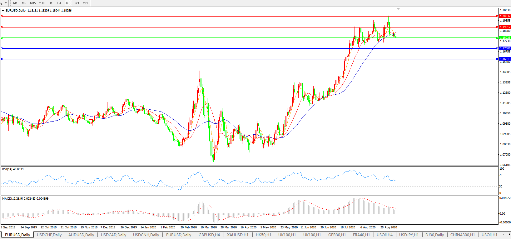 备选策略:1.1800下方看跌,目标1.1700、1.1600