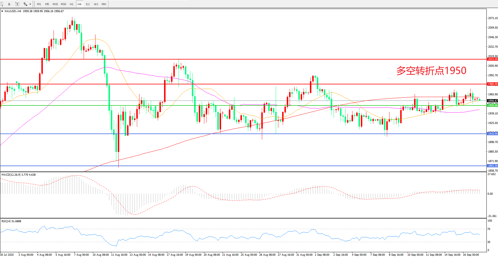多空转折点:1950.00