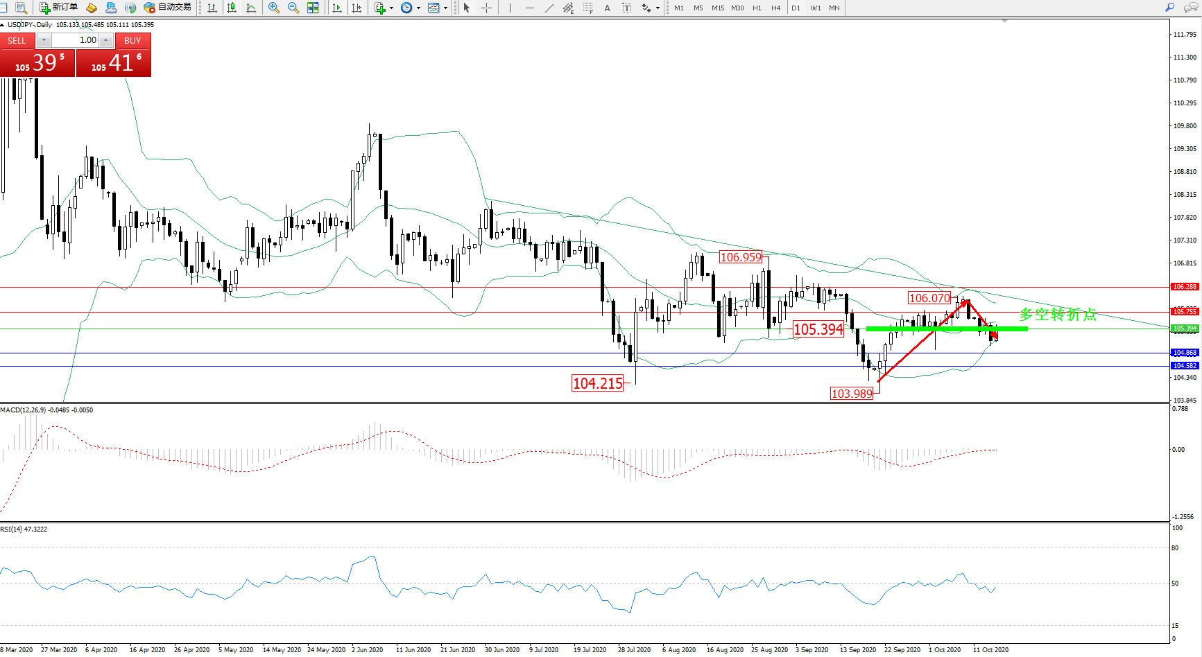 多空转折点:105.394