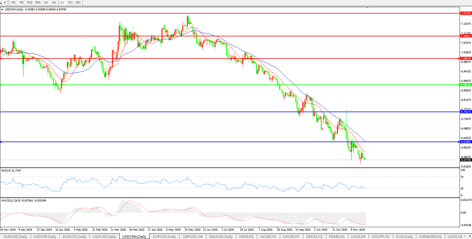 美元兑人民币USDCNH    日线图:
