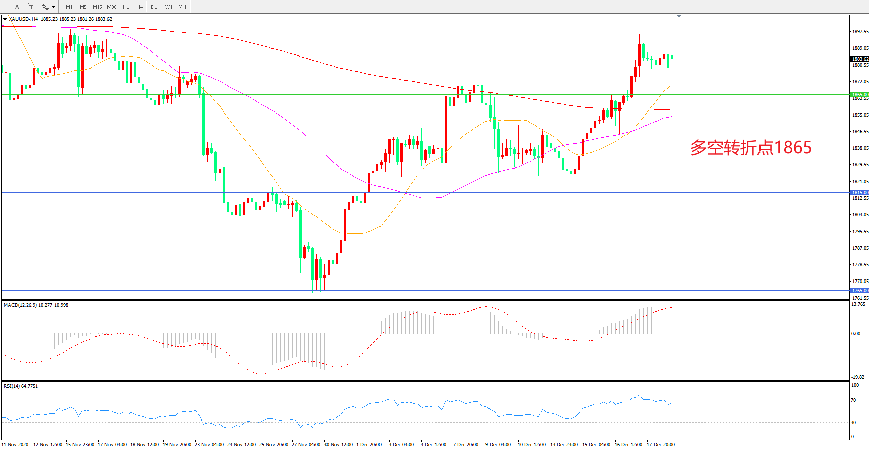 多空转折点:1865.00