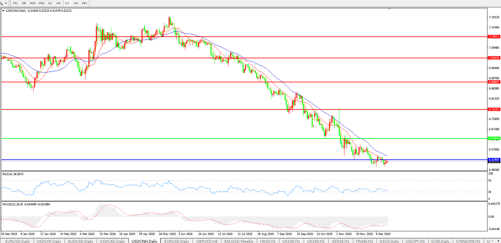 美元兑人民币USDCNH    日线图: