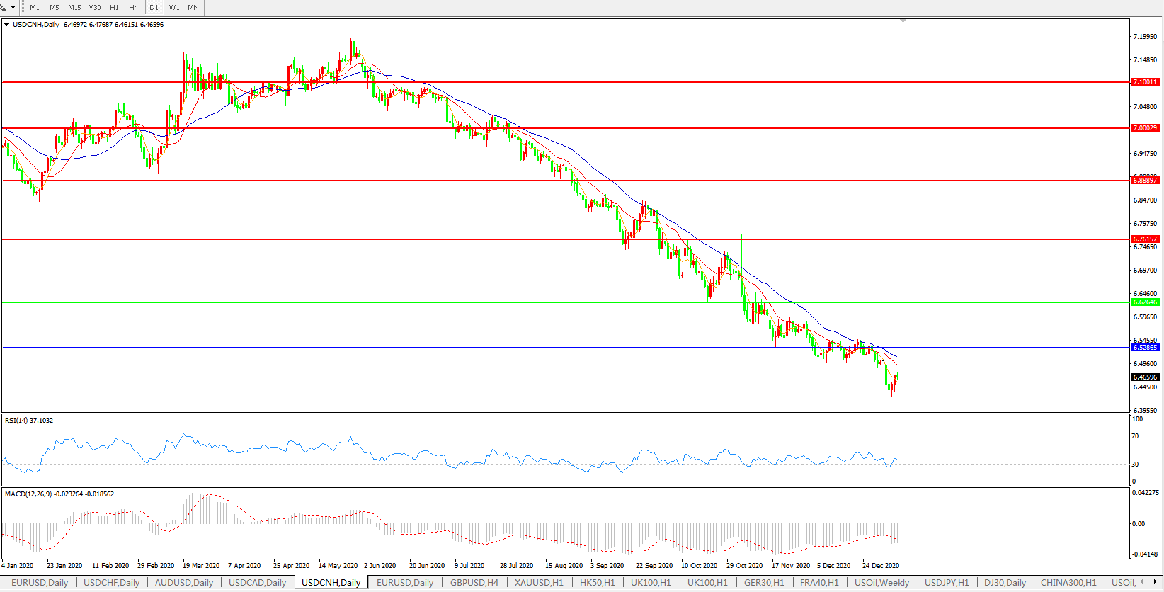 美元兑人民币USDCNH    日线图: