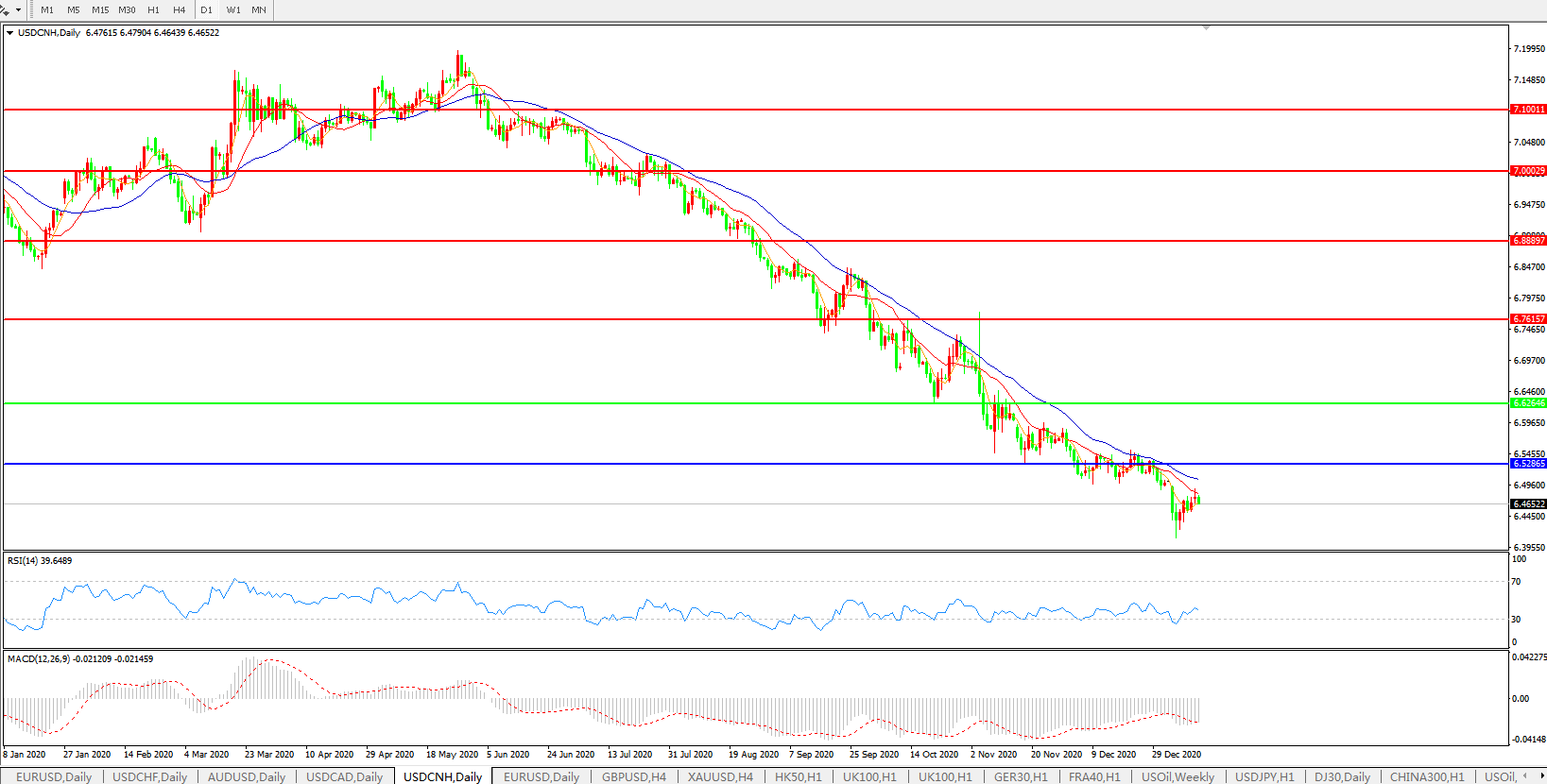 备选策略: 在6.6265之上,看涨,目标价位为6.7615,然后为6.8889。